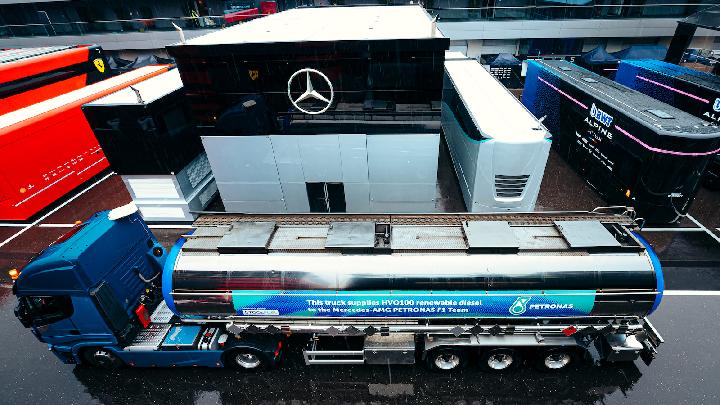 Tim Mercedes-AMG Petronas Formula 1, bekerja sama dengan Title and Technical Partner Petronas dan mitra logistik, tekan emisi gas buang dan irit BBM.